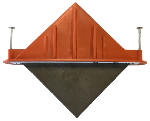 Positioning smooth dowels with lumber edge forms is easy with the plastic Dowel Sleeve and Nailing Plate.